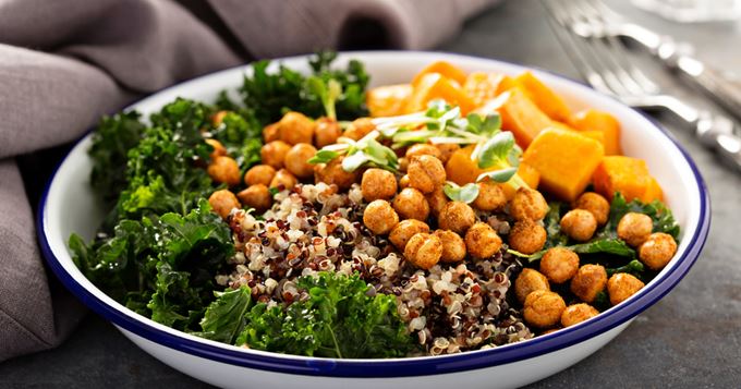 Base : riz vinaigreProtéine : saumonIngrédients : feve/carrotte/chou rouge/radis/comcombreSauce : soya sucrée /saléToping : mangue